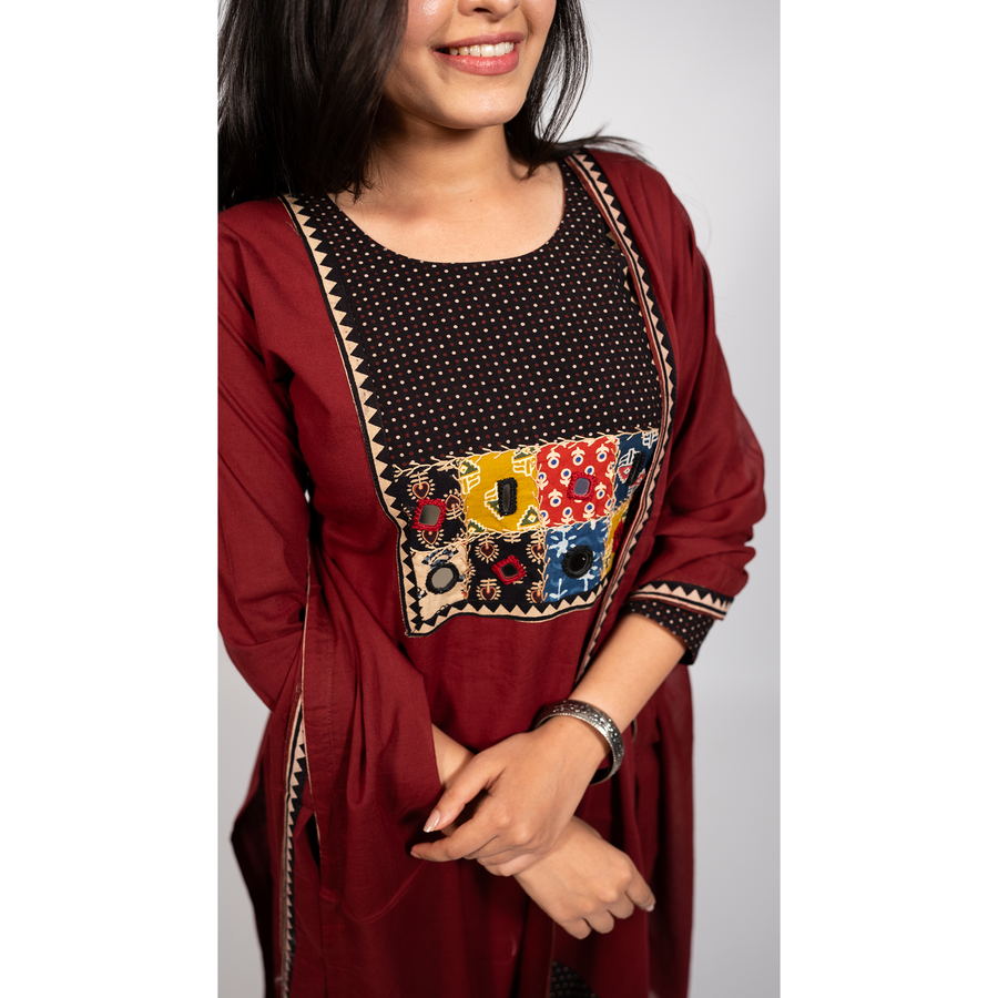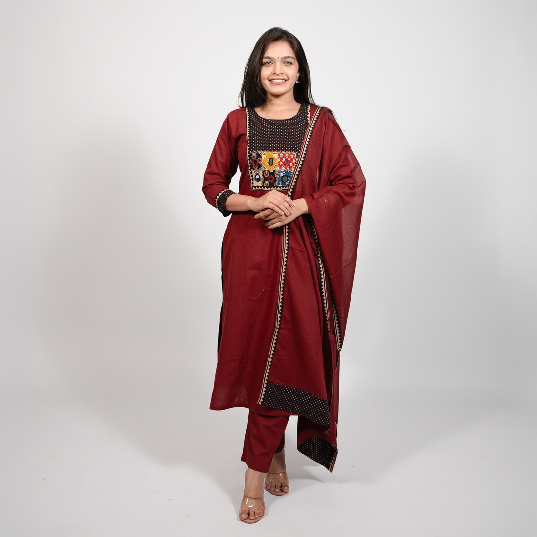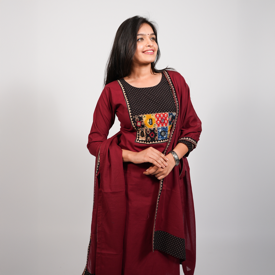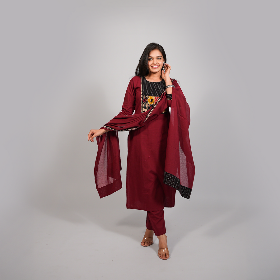 This Dupatta Pant Set is made of 100% cotton fabric, providing a comfortable and breathable fit. With sizes ranging from 36-44 and a kurta length of 46 and pant length of 38, it offers a perfect fit for a wide range of body types. Experience the classic elegance and comfort of this versatile set.