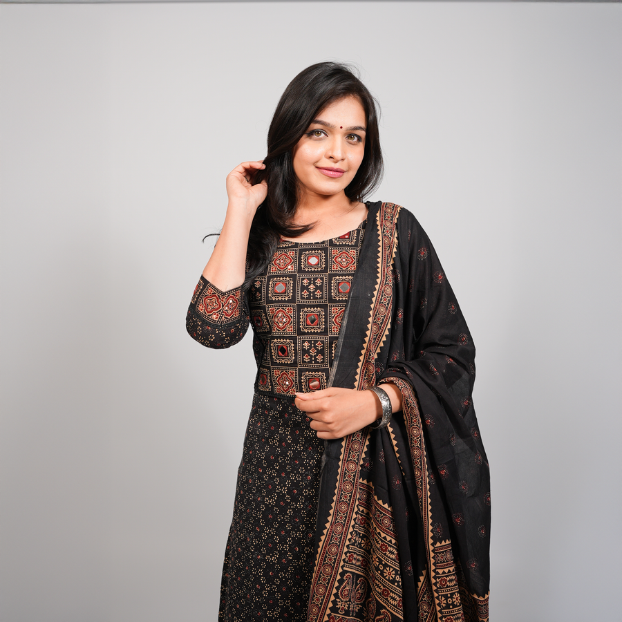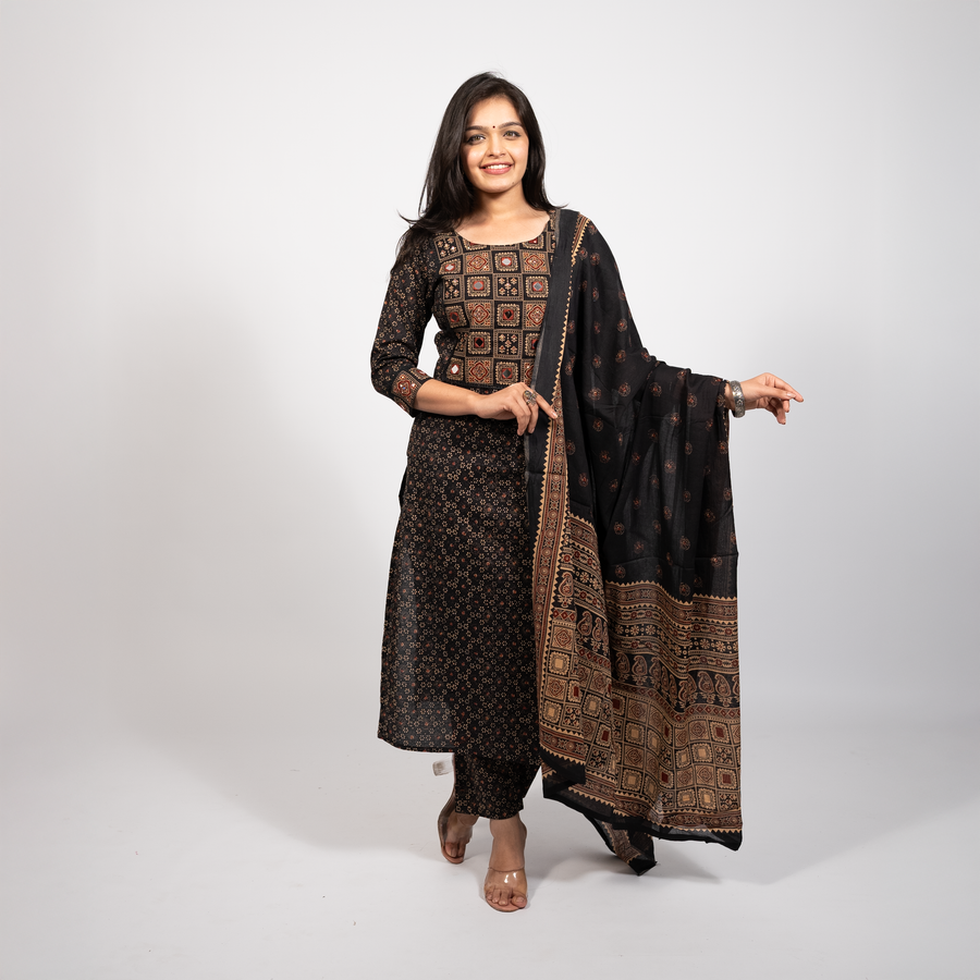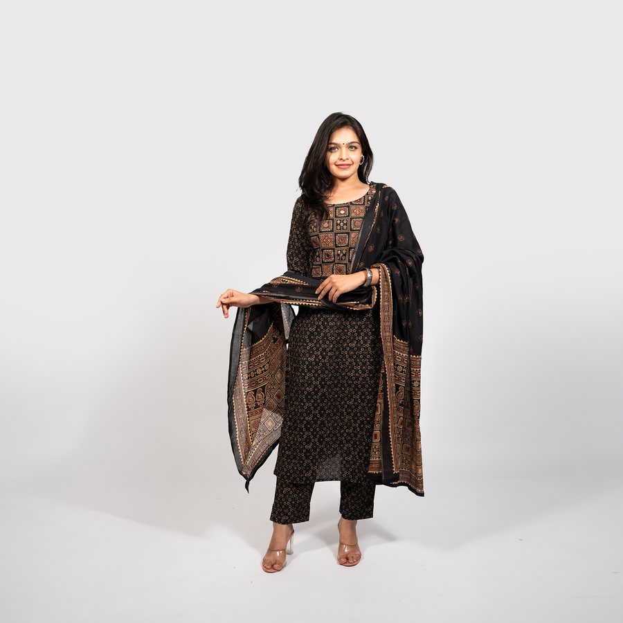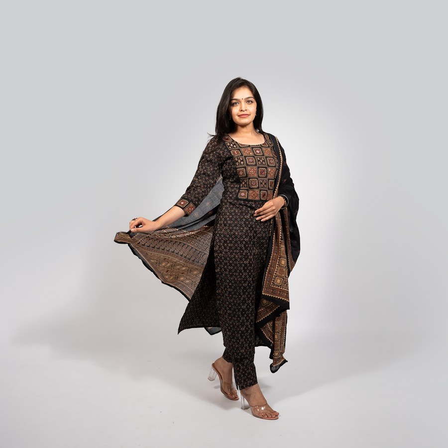 This Dupatta Pant Set is made from soft and comfortable cotton fabric, providing optimal breathability and comfort. Available in sizes 36-44, the kurta measures 46 inches in length and the pants measure 38 inches in length. Perfect for any occasion, this set is a must-have for all fashion lovers.