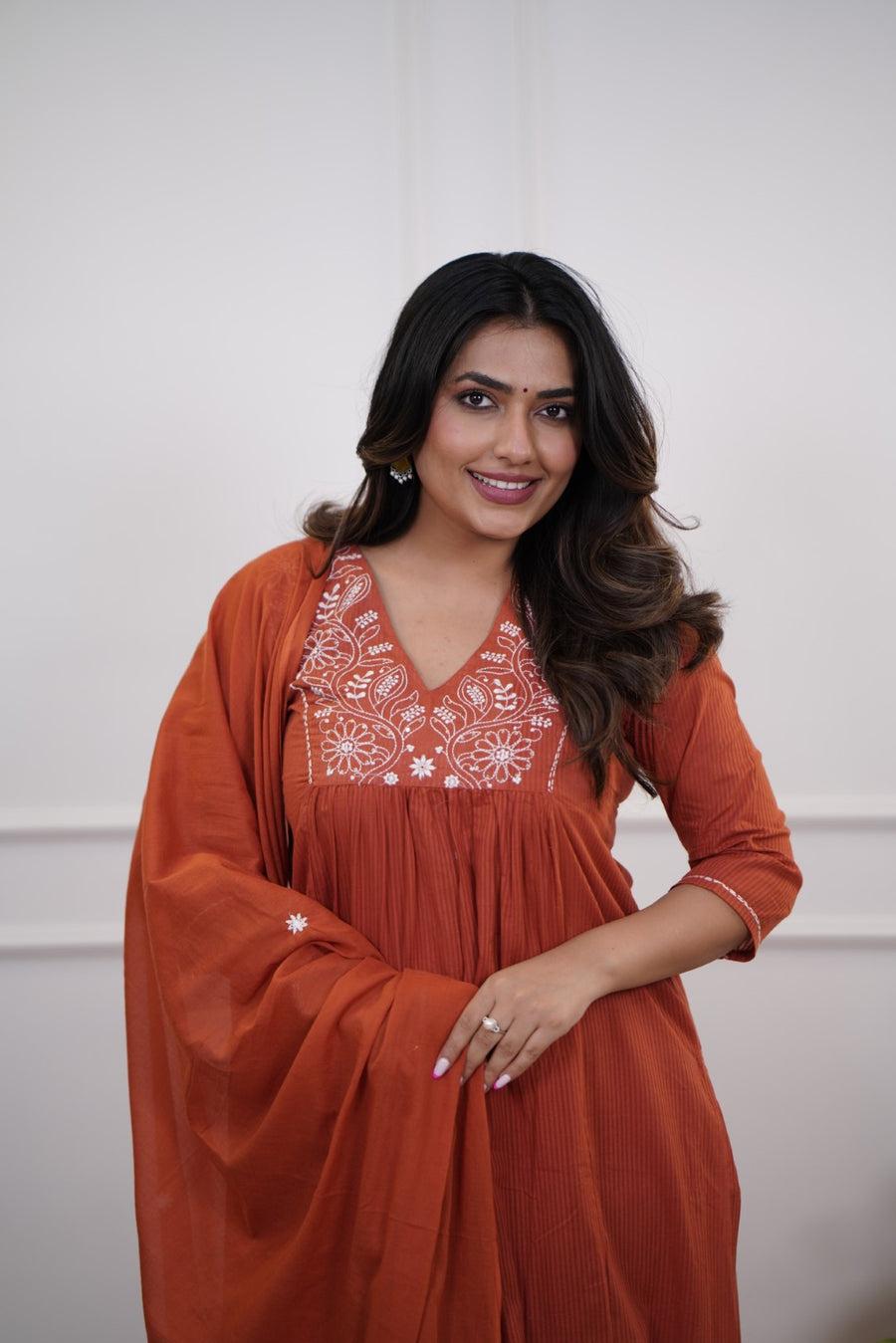 This Dupatta Pant Set is made of premium quality cotton, ensuring a comfortable and breathable fit for sizes 38-46. The kurta has a length of 46 inches while the pant is 38 inches, making it suitable for a variety of body types. Enjoy the perfect combination of style and comfort with this versatile set.