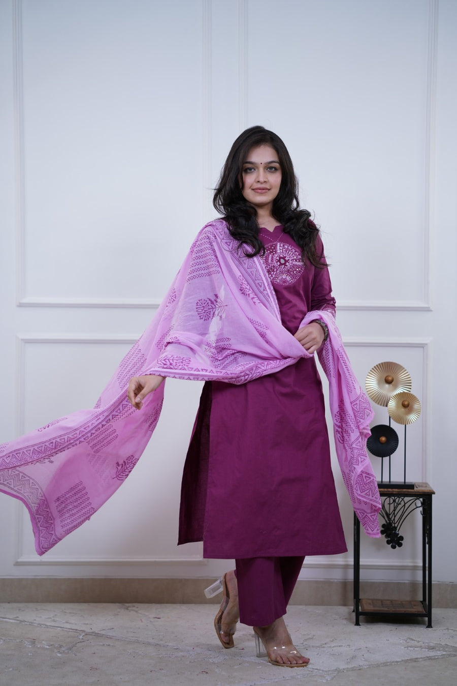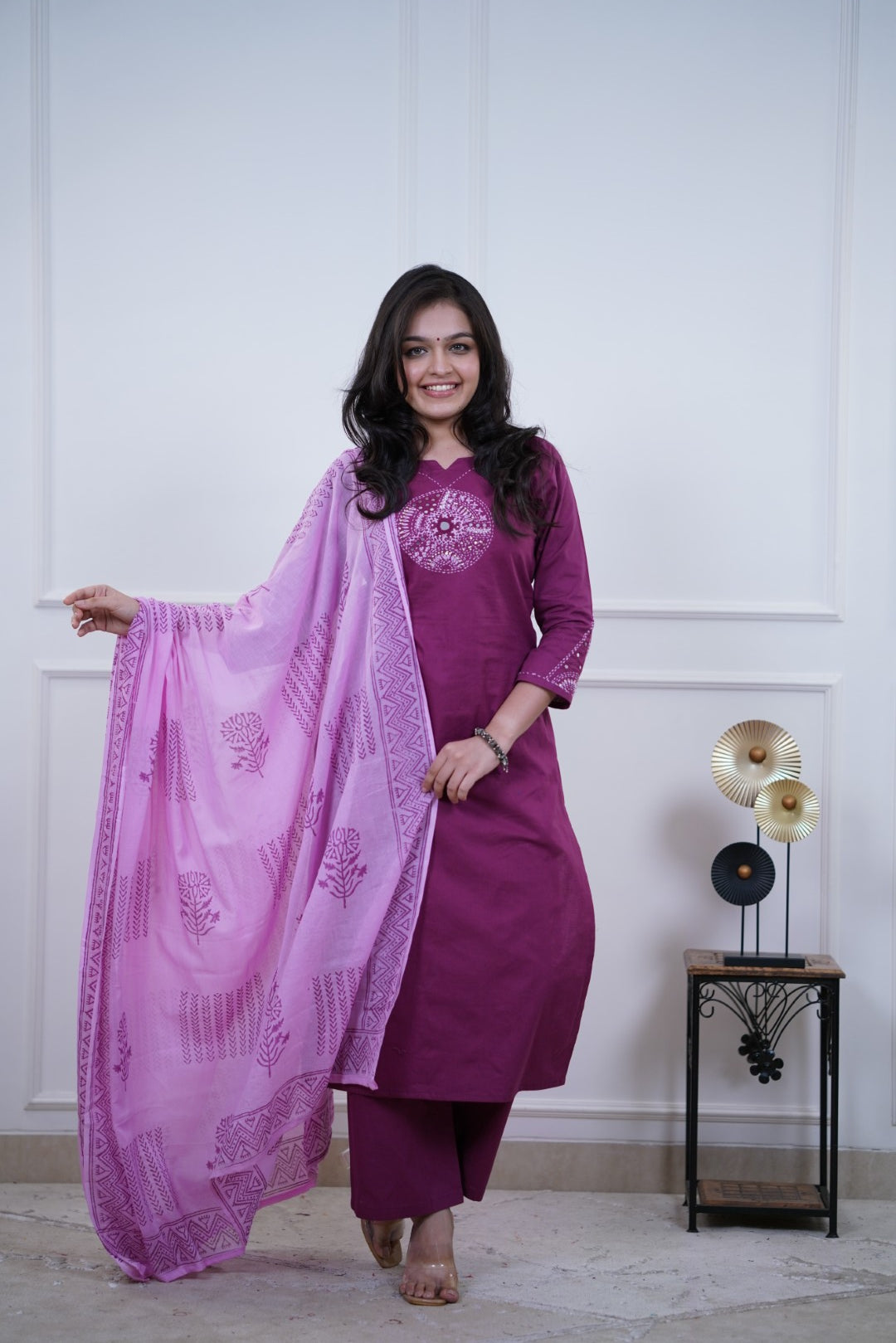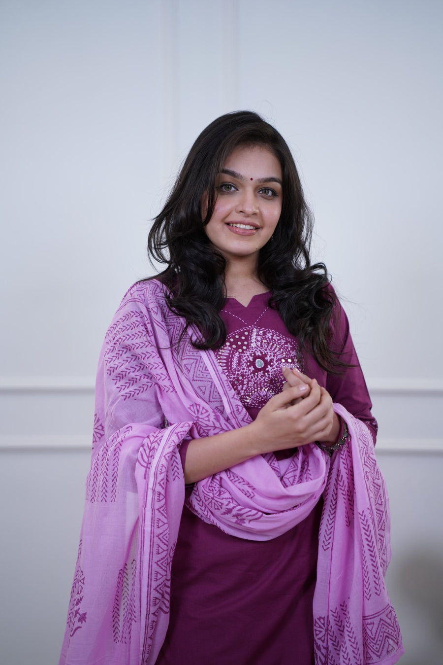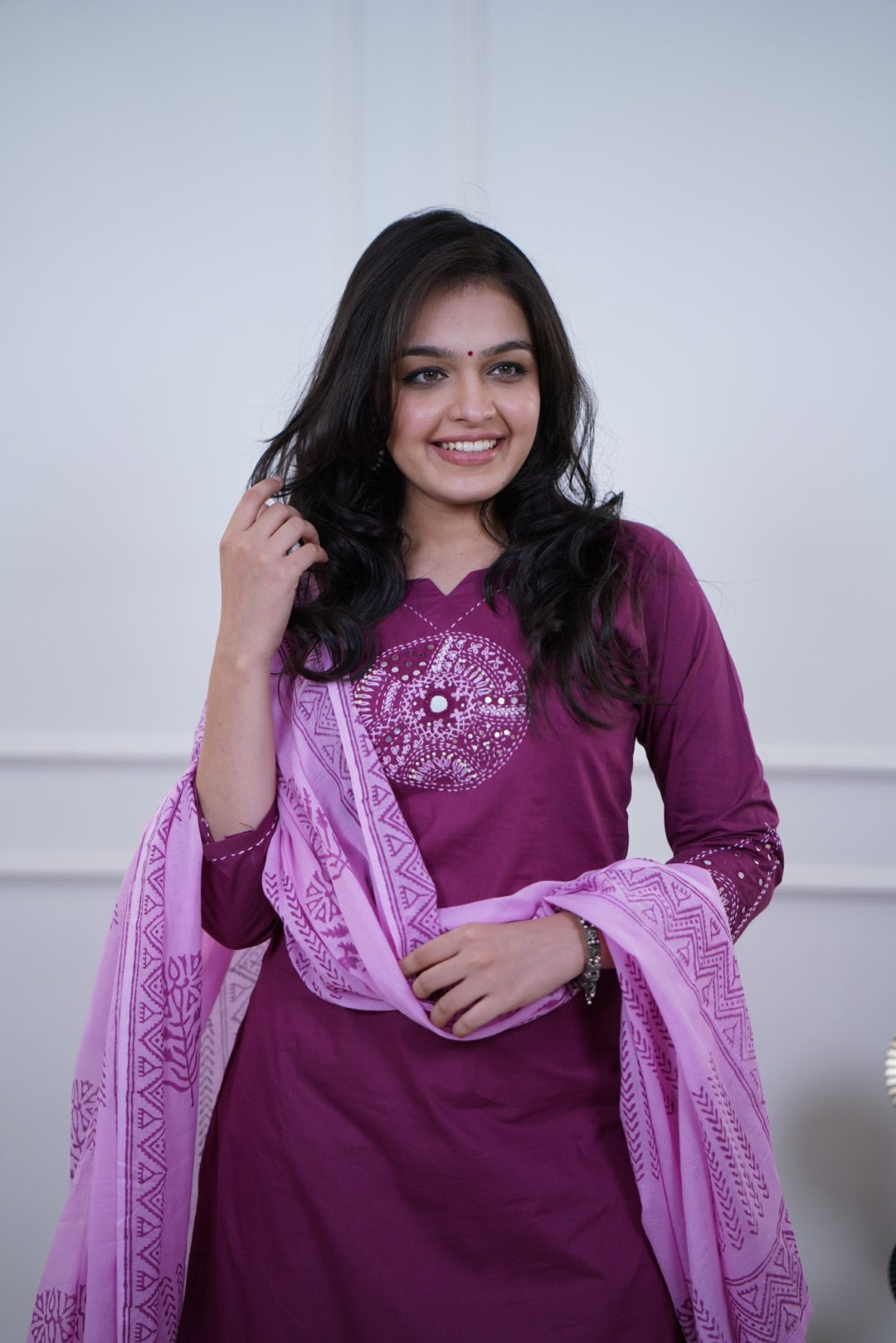 This Dupatta Pant Set is made of high-quality cotton and features intricate mirror work, adding a touch of elegance to any outfit. Available in sizes 38-46, the Kurta is 46 inches in length and the Pant is 38 inches in length, providing a perfect fit for all. Perfect for any occasion, this set combines comfort and style effortlessly.