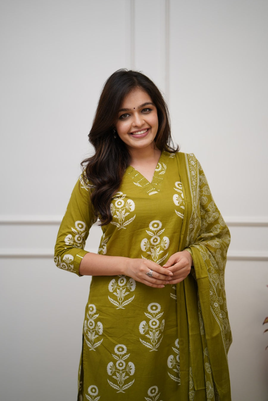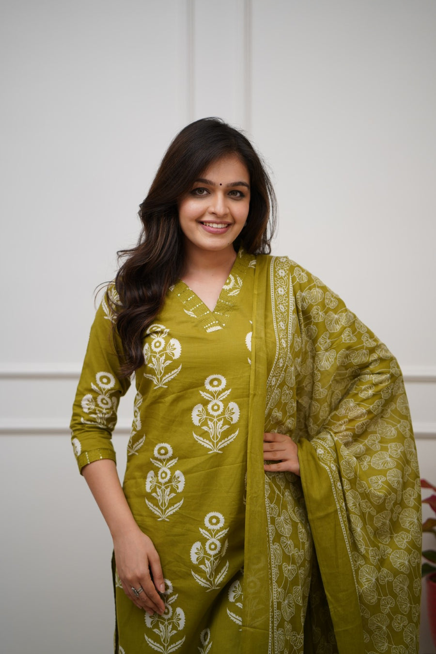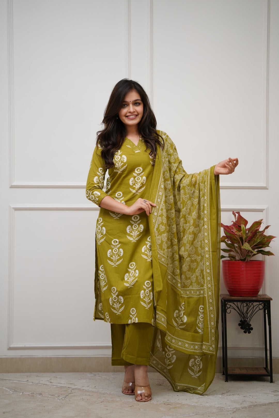 This Dupatta Pant Set is expertly crafted with breathable cotton fabric to keep you comfortable all day long. With a size range of 38-46, the kurta measures 46 inches in length and the pants measure 38 inches in length. Perfect for any occasion, this set is a must-have for any wardrobe.