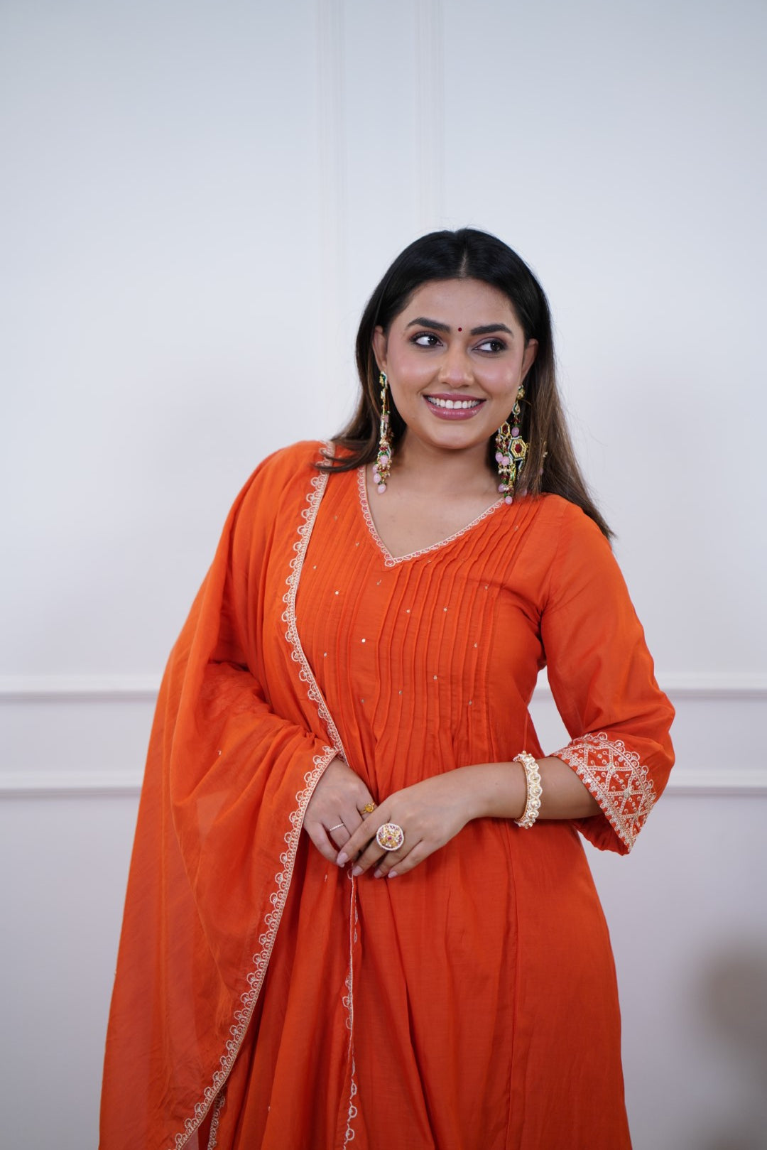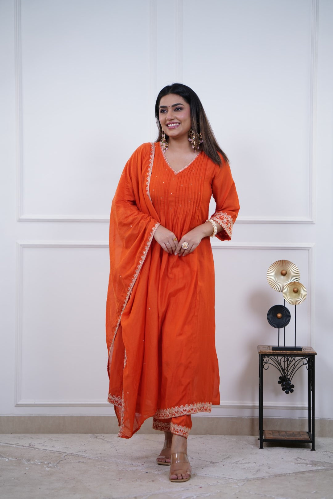 Expertly crafted from Mul Chanderi Silk fabric, this kurta set offers both style and comfort. The kurta's length of 49 inches and pant's length of 38 inches make it a perfect fit for sizes 38-44. Experience the elegance of this traditional Indian attire.