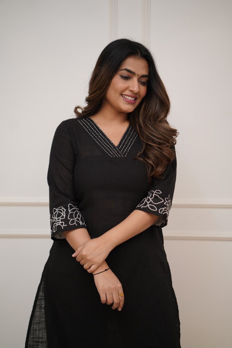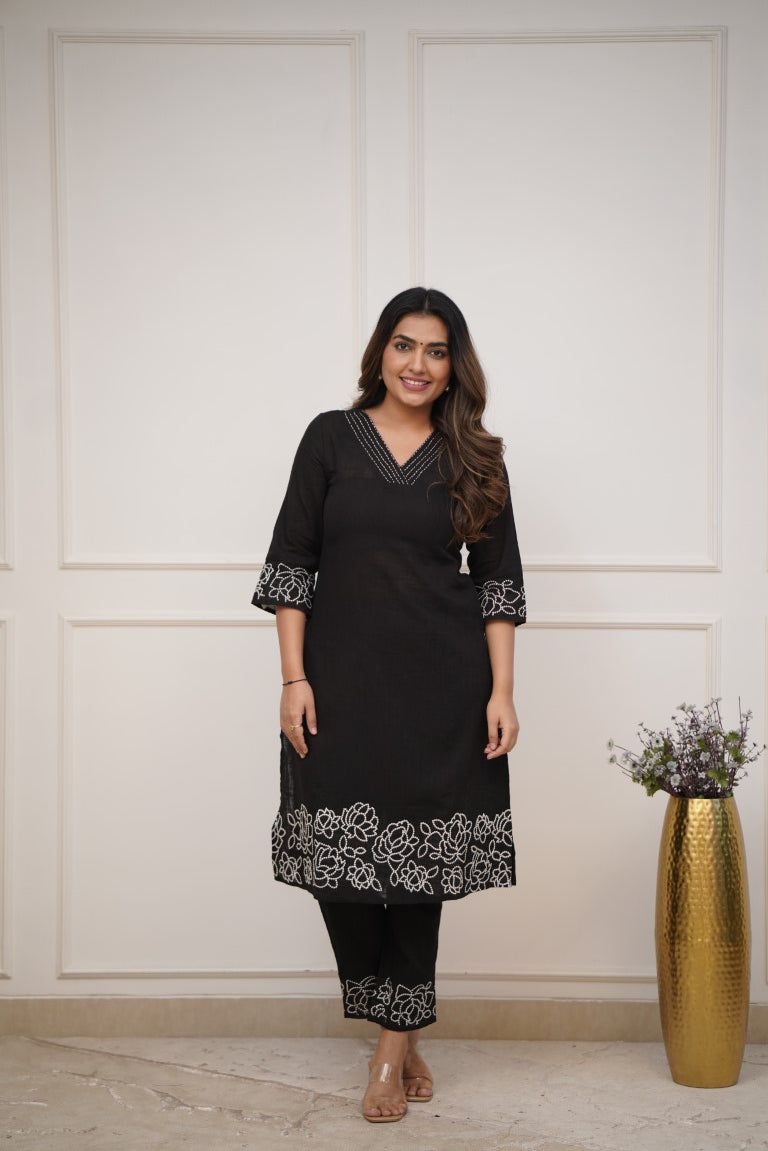 Expertly crafted from cotton, this Kurta Pant Set offers a comfortable and breathable fabric for daily wear. Available in sizes 36-44, the kurta and pant lengths of 46 and 38 respectively guarantee a great fit for all body types. Stay stylish and comfortable in this versatile set.