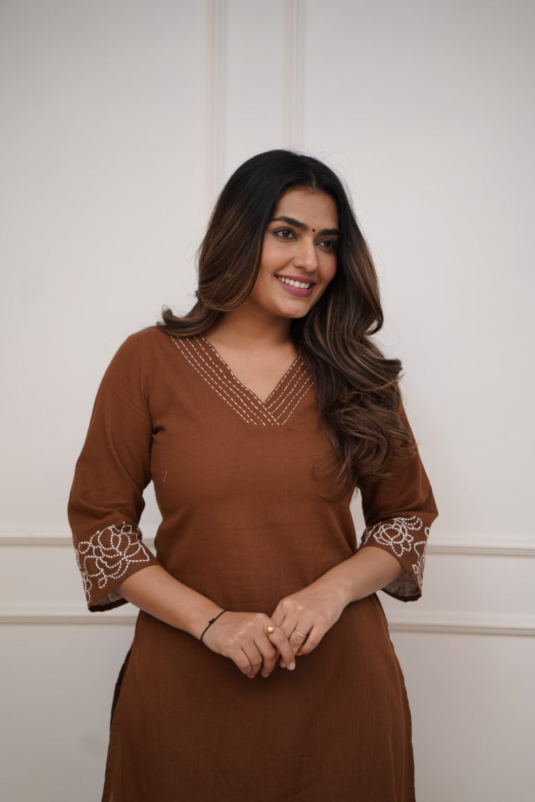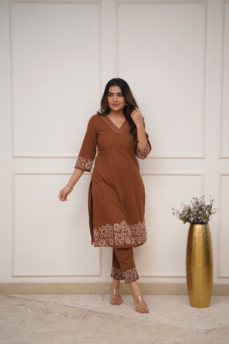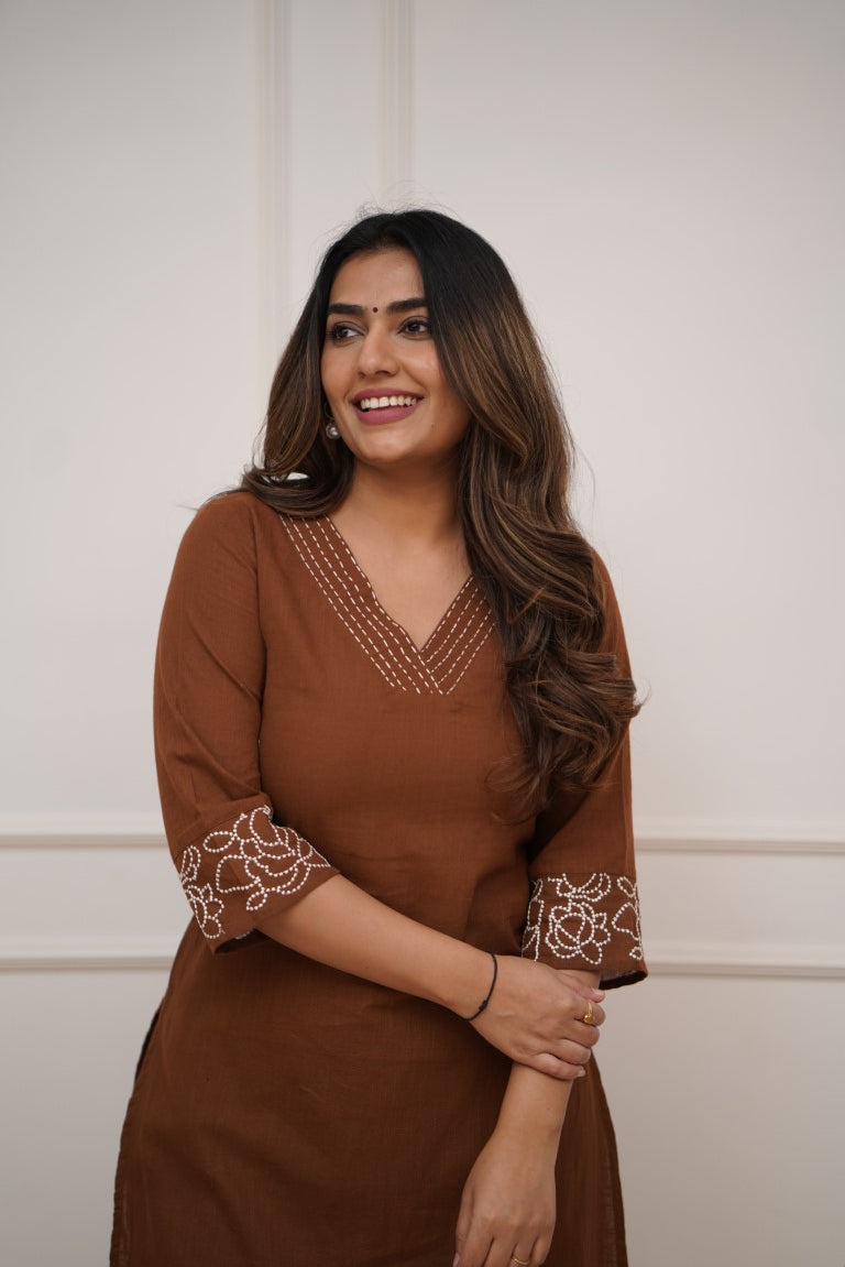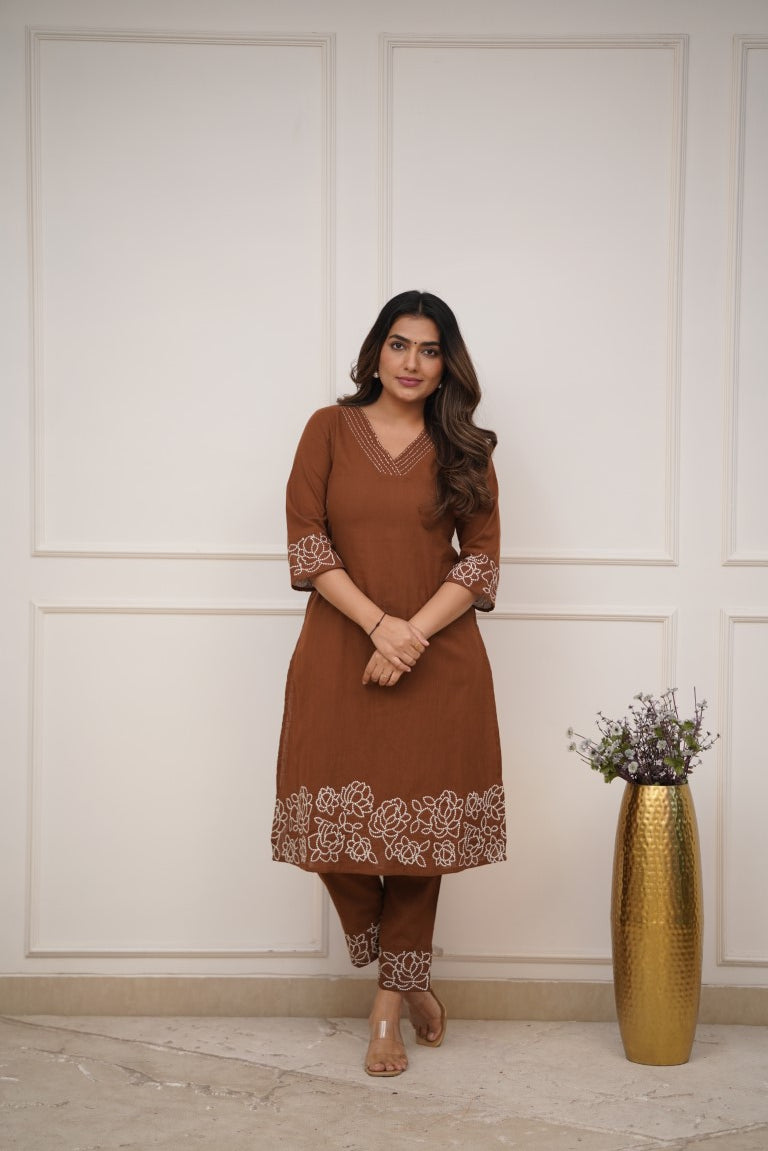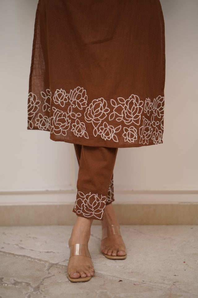 Expertly crafted from cotton, this Kurta Pant Set offers a comfortable and breathable fabric for daily wear. Available in sizes 36-44, the kurta and pant lengths of 46 and 38 respectively guarantee a great fit for all body types. Stay stylish and comfortable in this versatile set.
