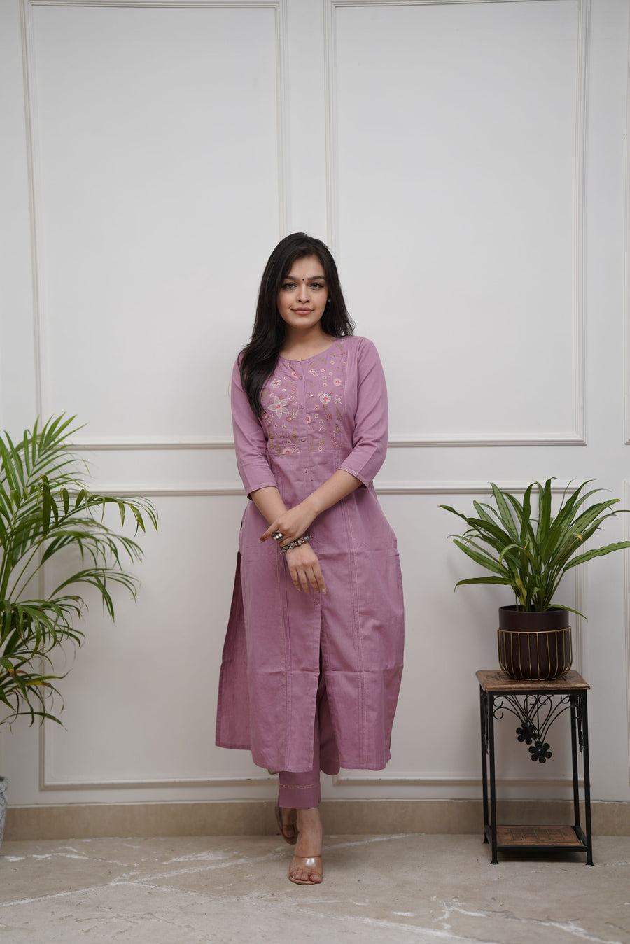 Expertly crafted with 100% cotton fabric, this Kurta Pant Set offers both comfort and style. Available in sizes 38 to 46, the kurta length is 46 inches and pant length is 38 inches. Perfect for any occasion, this set is a must-have addition to your wardrobe.