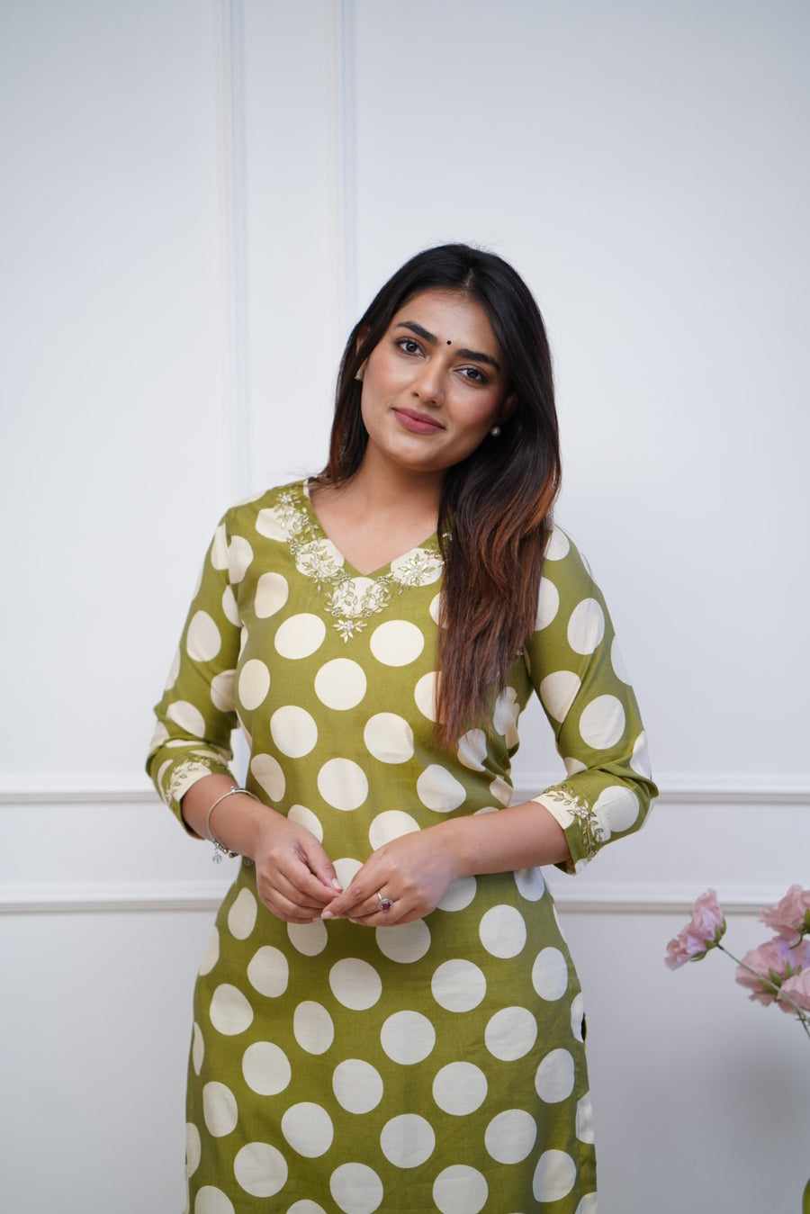 This muslin kurta and pant set, available in sizes 38-44, offers a comfortable and breathable fabric that drapes elegantly, making it perfect for any occasion. The kurta length is 46 inches and the pant length is 38 inches, providing a perfect fit for maximum comfort.