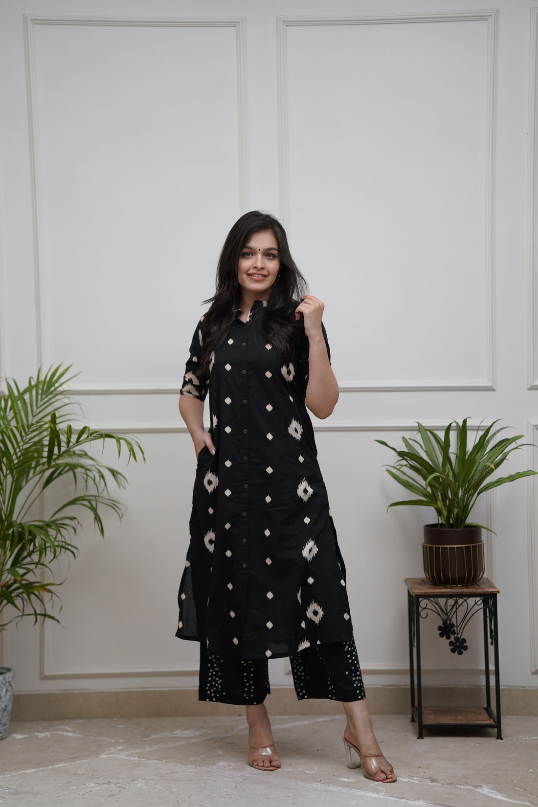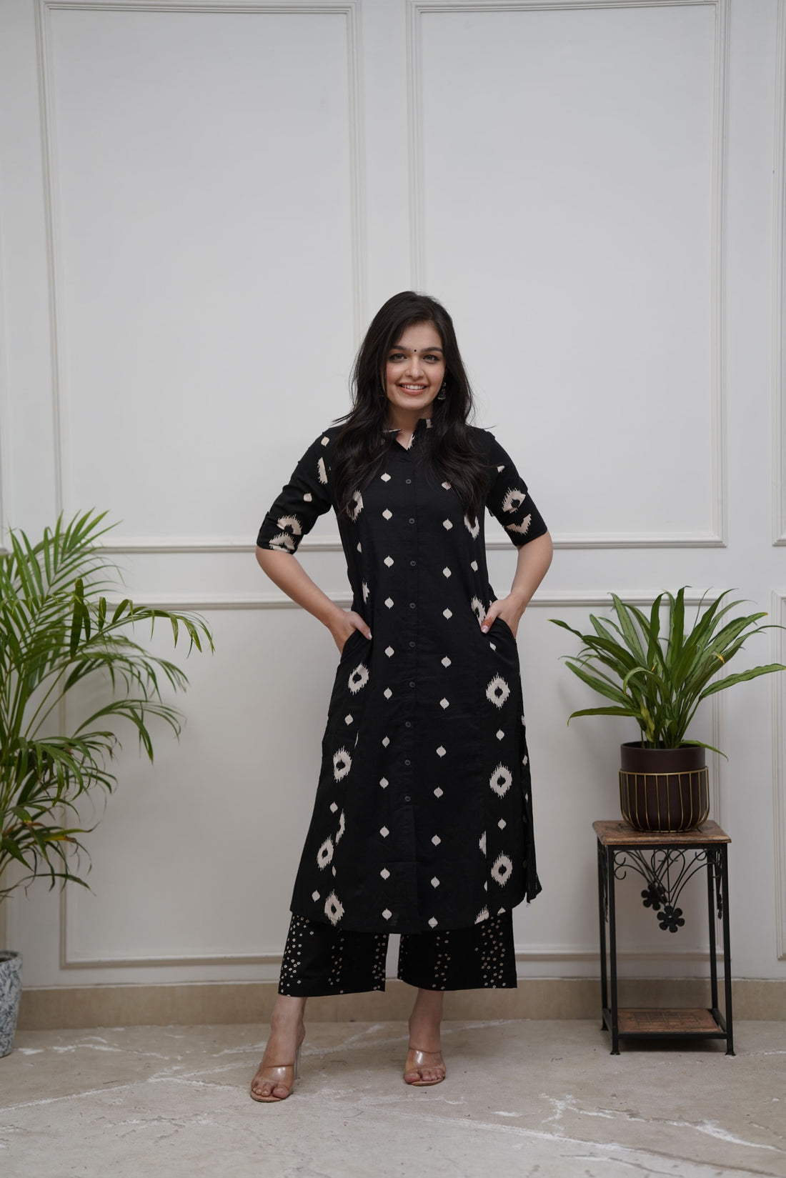 Made from soft, breathable cotton fabric, this kurta plazo set is designed for optimal comfort and style. With sizes ranging from 38 to 46, you can find the perfect fit for your unique body type. The kurta is 46 inches long, while the plazo is 35 inches long, providing ample coverage and a flattering silhouette. Get this high-quality set at a budget-friendly price, perfect for any occasion.